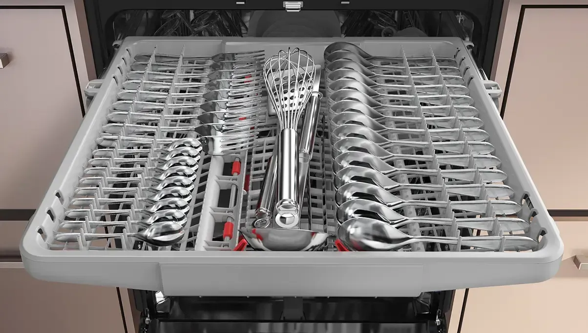The flexible 3rd rack provides extra space to load silverware. Use adjustable section for oversized utensils.